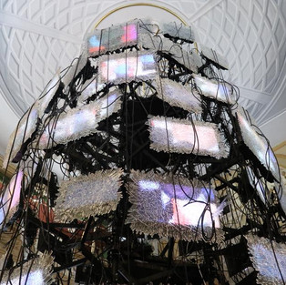 3階まで桟敷席のある小さな古い劇場を使い、中央にはディスプレイを凹凸のあるガラスで覆った大きなタワーが。